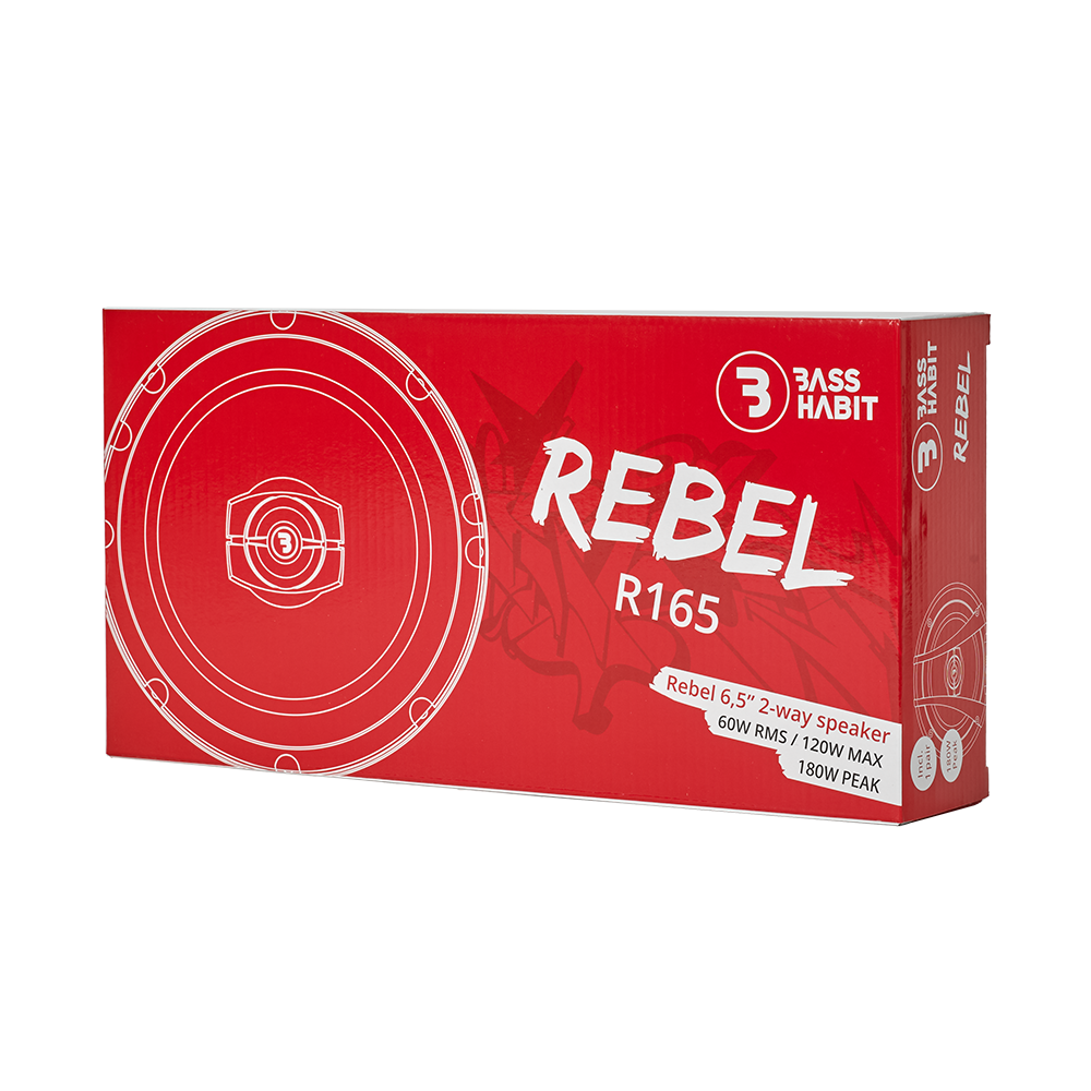 REBEL R165 - это 6,5-дюймовый 2-полосный коаксиальный комплект акустики в slim исполнении с достойным звучанием! R165 из серии Rebel предоставляет вам полную полосу частот с точной серединой и выраженными верхними частотами.