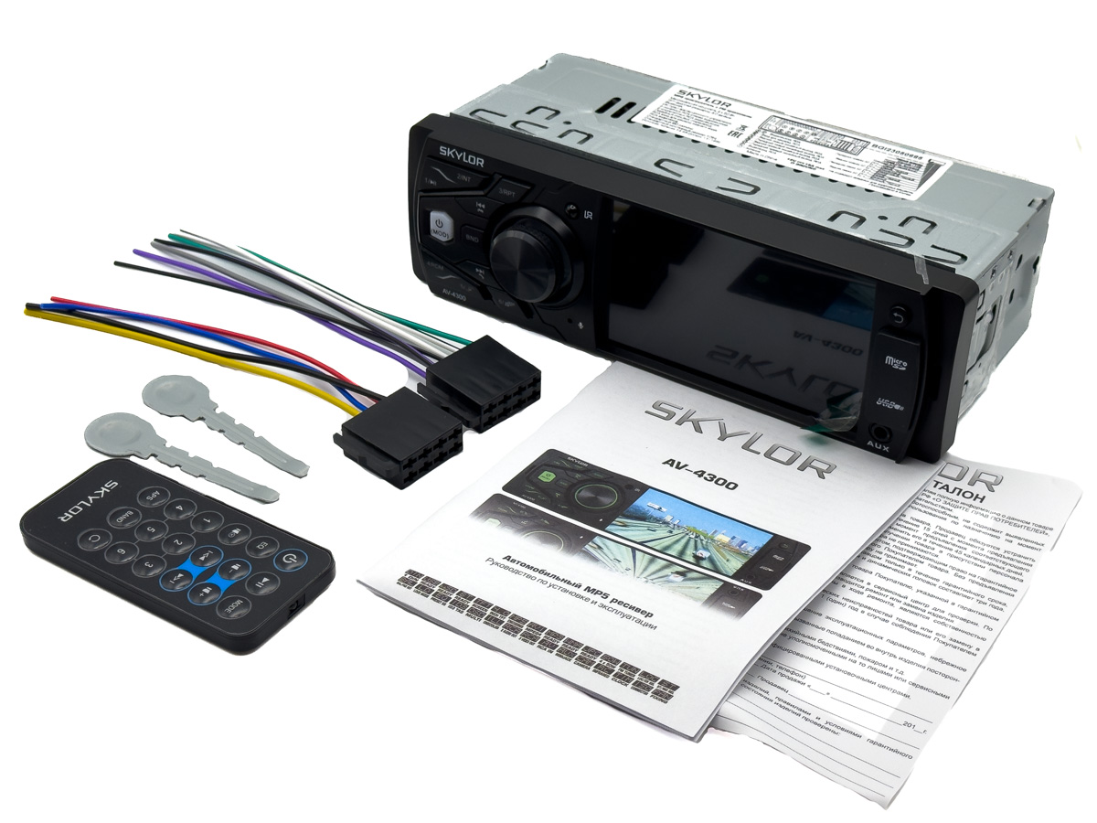 Медиа-ресивер SKYLOR AV-4300 предназначен для воспроизведения аудио и видео файлов с USB носителя и с micro SD карты памяти, а также приема радиостанций в FM диапазонах. SKYLOR AV-4300 обеспечивает воспроизведение звука через дополнительные акустические системы или линейные аудиовыходы, а также выполняет функцию «Хэндсфри» по каналу Блютуз. В SKYLOR AV-4300 есть возможность подключения камеры заднего вида, с выводом изображения на экран.